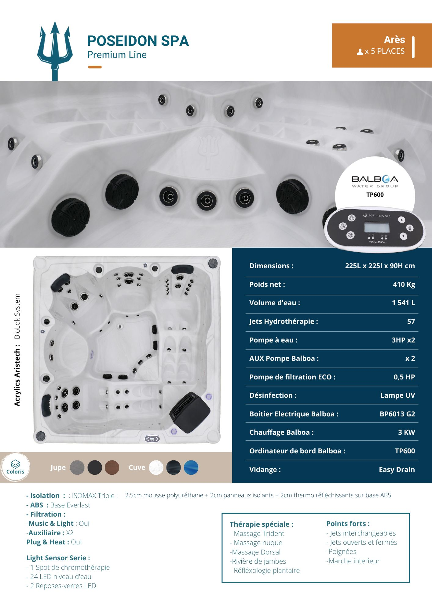 Spa 5 places Arès 2026 : caractéristiques techniques
